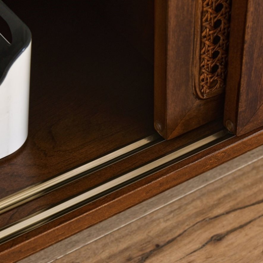 The double track slides are designed to allow you to use the interior space more freely. Both cabinet doors have 4 pulleys at the bottom, which greatly improves its stability and smoothness.