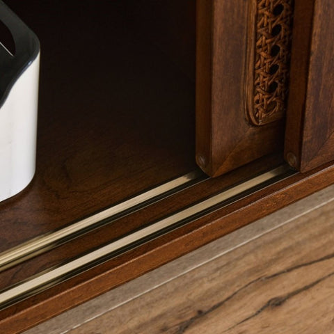 Solid wood cabinet legs provide strong support for this rattan TV cabinet. In addition, the plastic adjustable feet on the cabinet legs allow you to adjust the angle for balance as well as avoid scratching the floor.