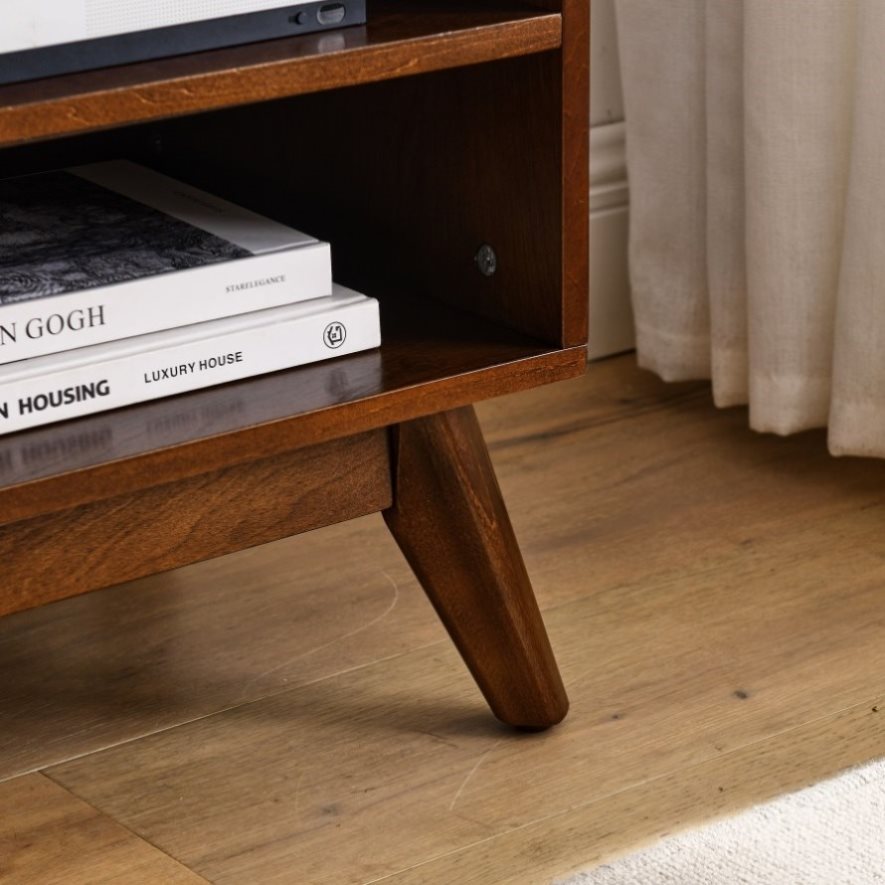 [ Good for Storage, Keep Away from Clutter ] - The two shelves on the left side of the cabinet have sliding doors to hide clutter, and the open shelves on the right side are convenient for placing TV boxes or other items. This mid-century style TV cabinet can meet any of your needs.