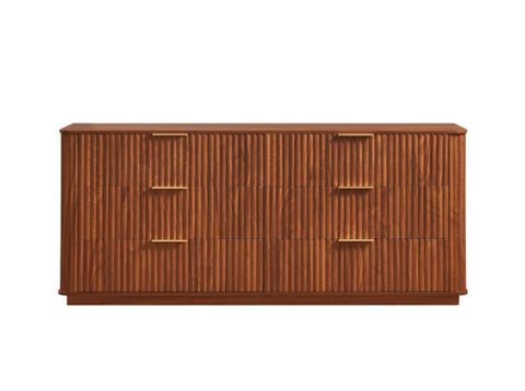 The dresser features sophisticated wave-textured panels, combining sleek curved contours with a refined aesthetic that elevates any space. This unique design not only adds visual depth but also enhances the tactile experience, making it a statement piece that blends seamlessly with modern or contemporary interiors.