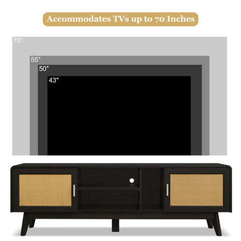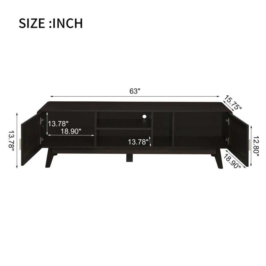 63'' Dark Rattan TV Stand with 2 Storage Cabinets for 65 Inch TV, Entertainment Center with Solid N710P182433B