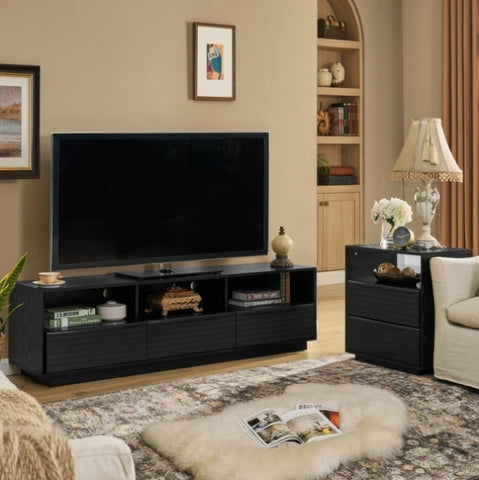 [ Spacious and Flexible Storage Space ] - Featuring 3 open fixed shelves and 3 thick drawers that can be flexibly divided into different storage and display areas, this TV stand can be adapted to meet your specific storage needs, making it ideal for storing everything from decorative items and glassware to books and multimedia equipment.