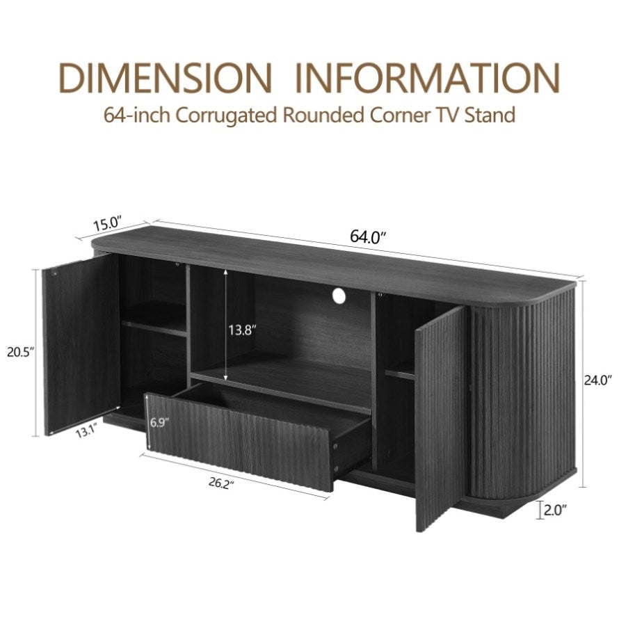 64-Inch Wavy TV Stand, Rounded Sideboard, Storage Cabinet, Wooden Vertical Stripe Cabinet for Living W1162P309020
