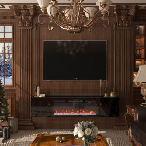 Additional UsageThe open shelf in the middle of the TV cabinet can be paired with an electric fireplace for additional decorative and heating effects