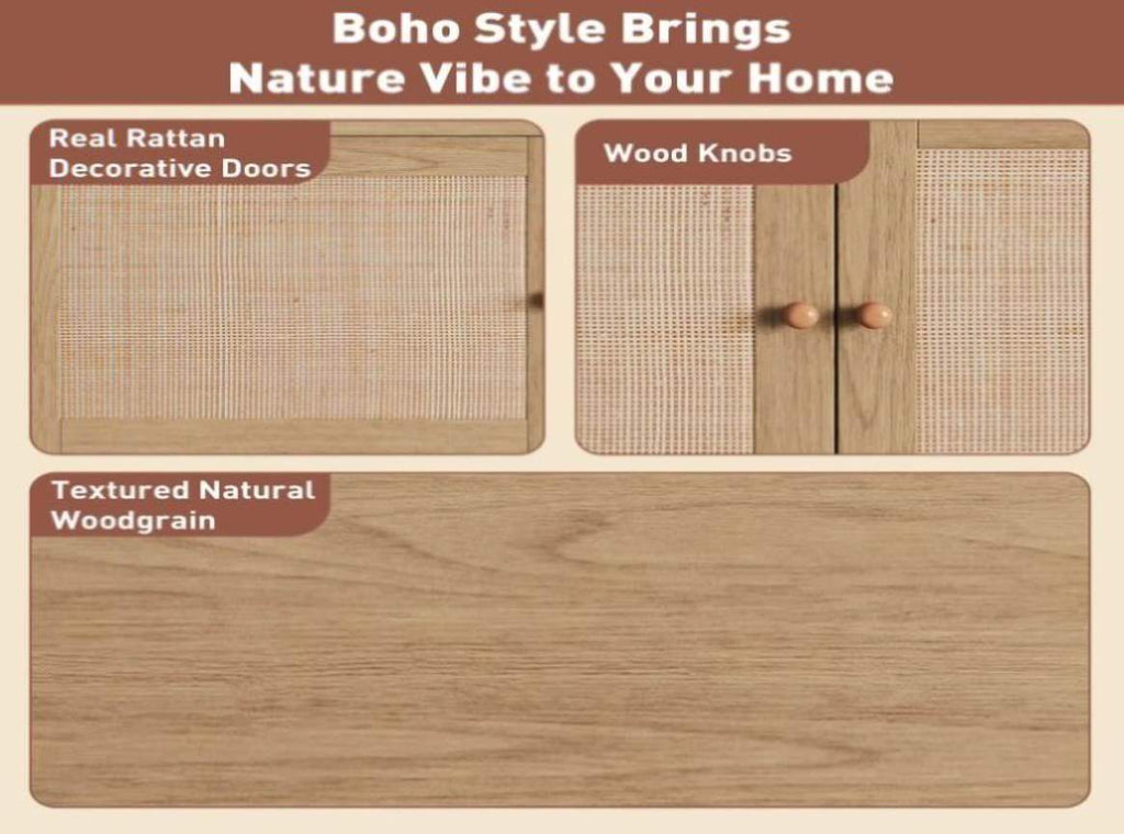 Boho TV Stand for 65, 75, 85 Inch TV, Entertainment Center with Open Storage and Drawers, Modern 79553156