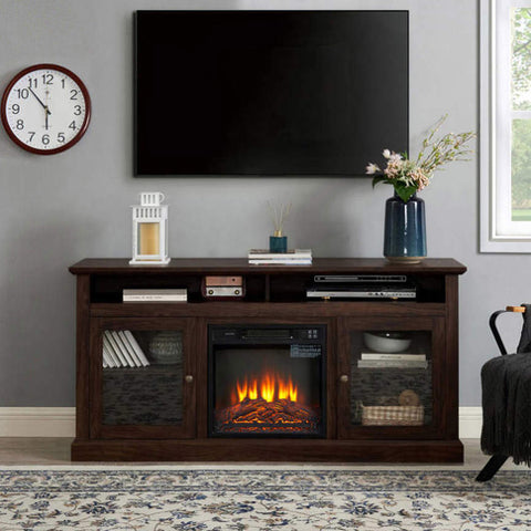 Contemporary TV Media Stand Modern Entertainment Console 18" Fireplace Insert for TV Up to 65" 37943791
