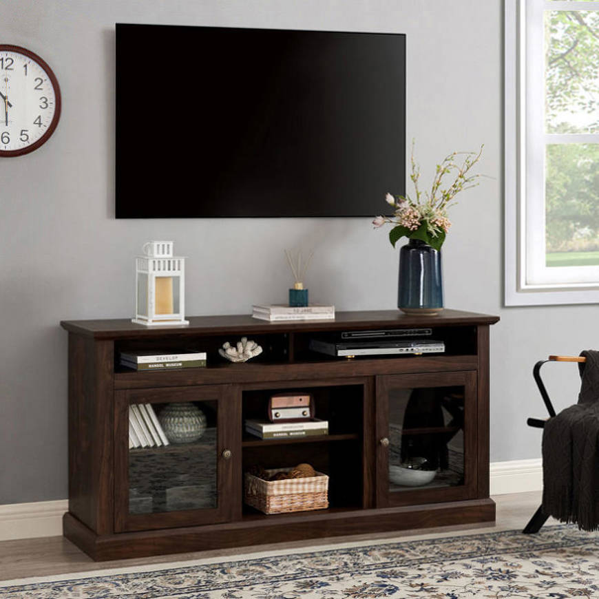 Dimensions: 60''W*15.75''D*29''H Largest TV Size: 65'' Body Color: Brown Material: MDF + PB Number of Cable Management Cutouts: 5 Number of Adjustable Shelfs: 3