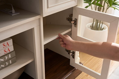 DURABLE AND STABLE CONSTRUCTION - Our TV stand is made of solid, high-density engineered material. The structurally sound design, thickened tabletop and weighted wood support base ensure that this media player's outstanding stability, durability and large weight capacity will stand up to the challenges of long-term use. The TV stand can hold up to 150 pounds on the tabletop and up to 30 pounds per shelf on the side cabinets.
