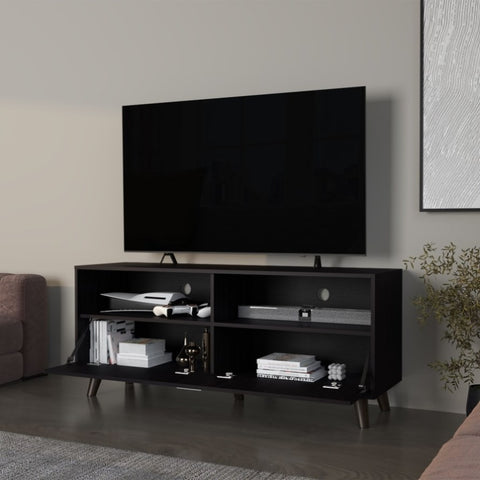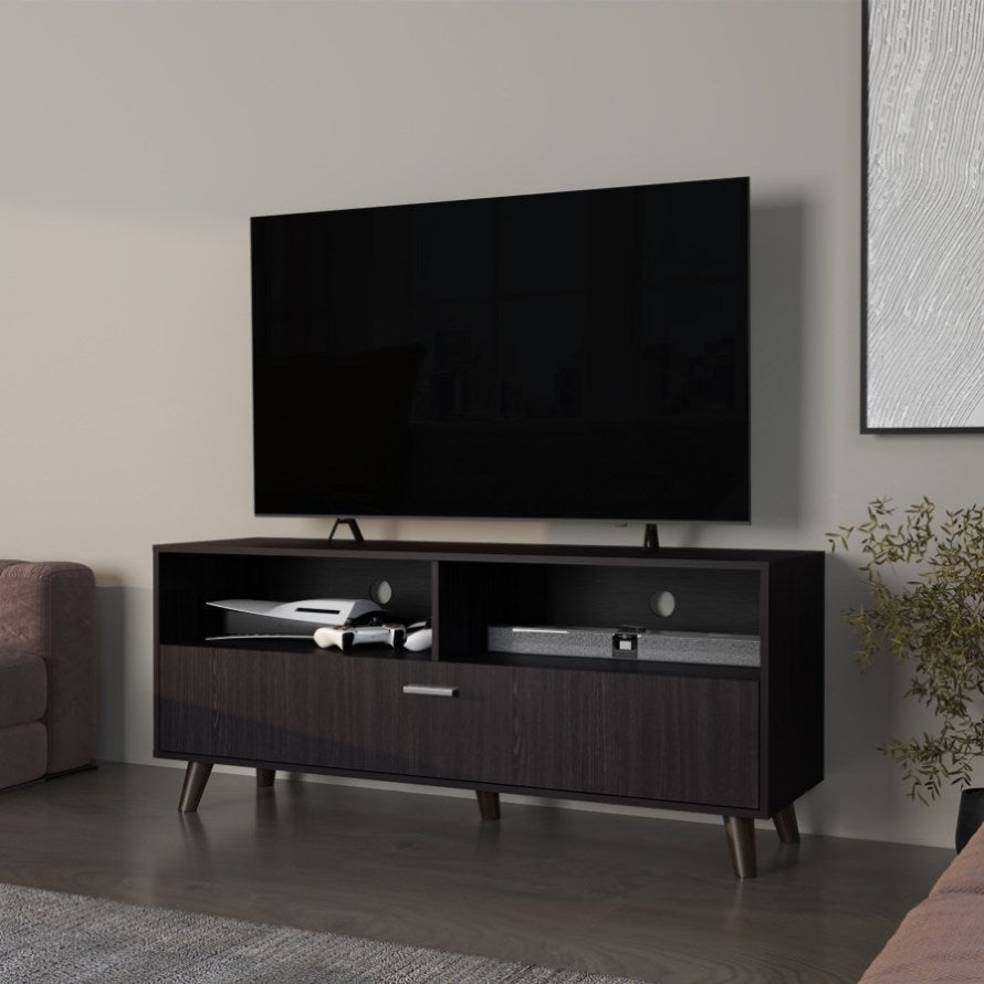 FM FURNITURE Black City Tv Stand 60" with Open Storage and 1 Door, Wengue B128P301397