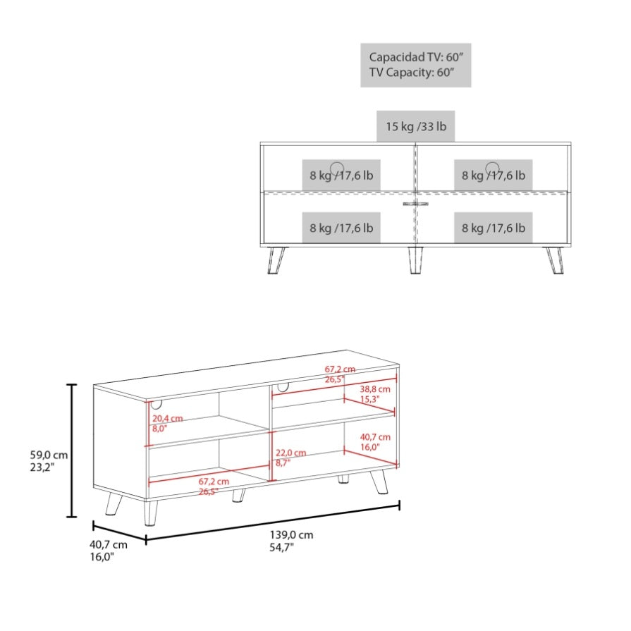 Dimensions: 23,2" (H) x 54,7" (W) x 16" (D)."