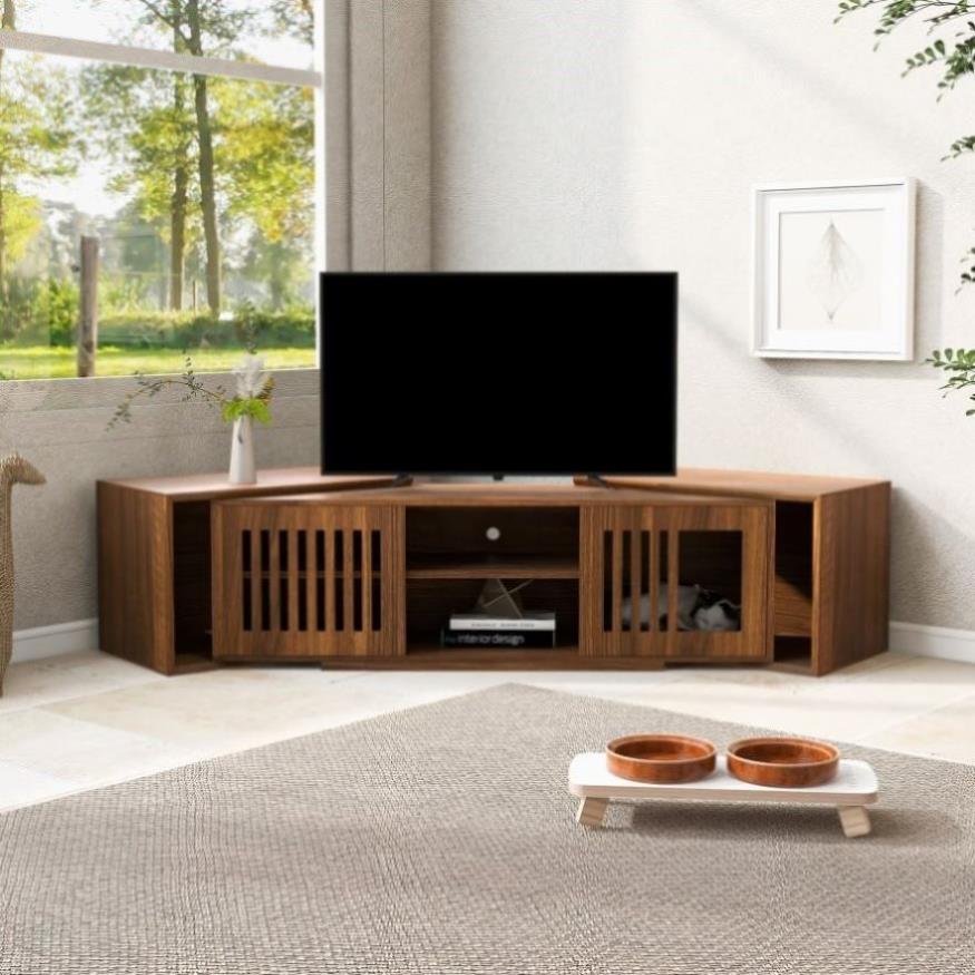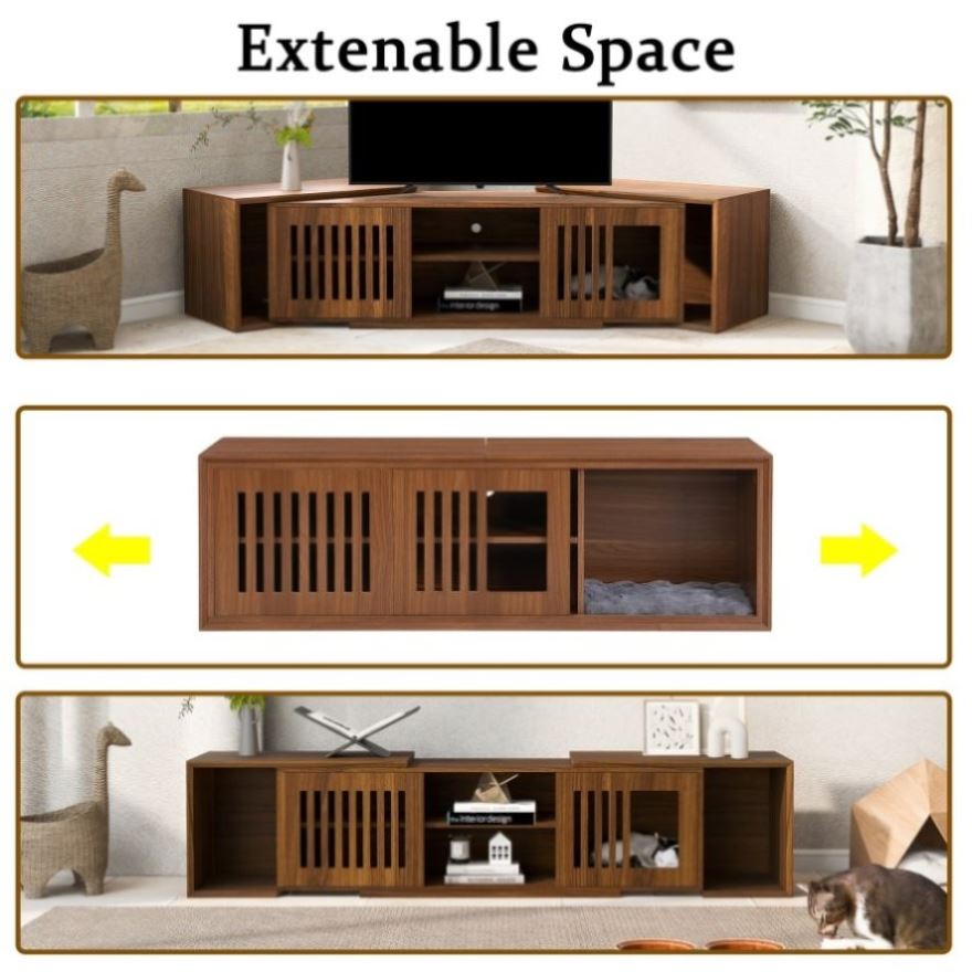 Mid-Century Morden Walnut Tv Stand With Extendable table Soft cushion Sliding door Cat friendly N843P255637W