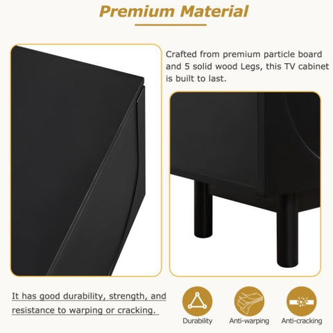 This TV cabinet boasts unique arch doors and cylindrical wood legs, adding a touch of elegance and modernity to the whole. This ingenious combination not only enhances the overall visual appeal, but also complements your indoor decors.