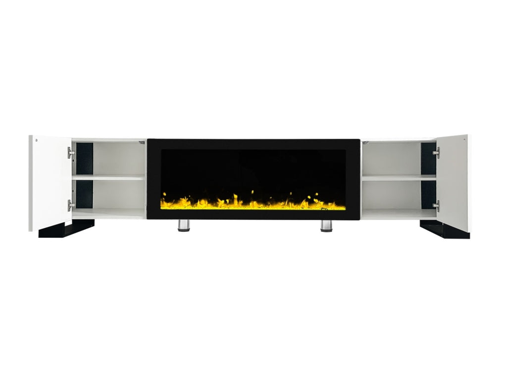 ON-TREND Modern TV Stand 34.2" Non-heating Electric Fireplace, High Gloss Entertainment Center 14602756