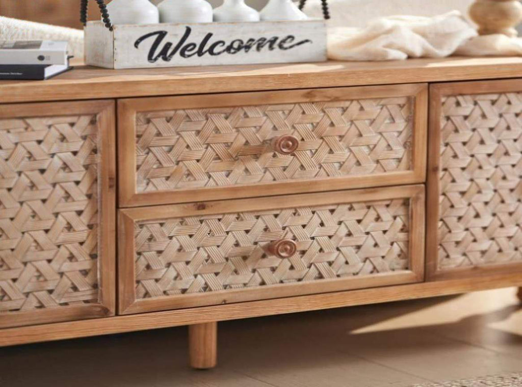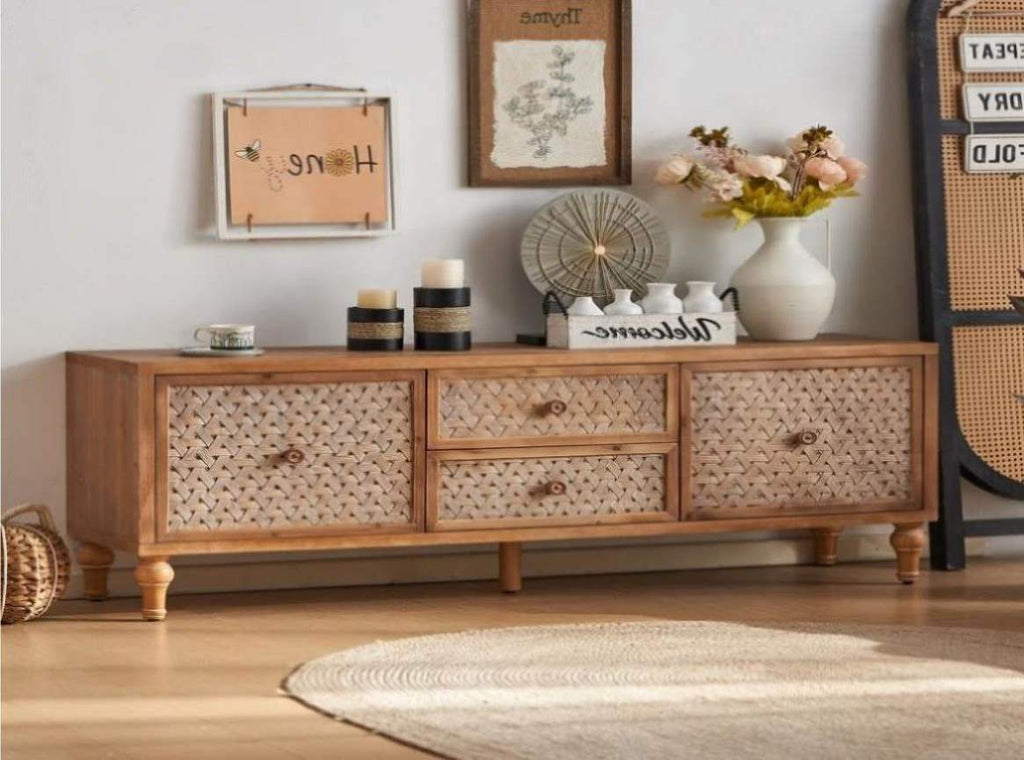 Rattan-decorated doors match the natural surface, this TV stand with storage blends modern and boho style. If your bedroom, living room or entryway is calling for a new upgrade with storage, this TV stand is a great addition.