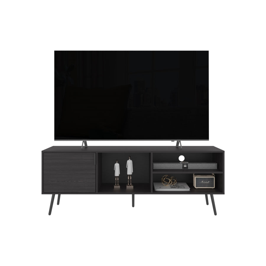TV Stand, 1 Door, 3 Shelves, Black B097P262376