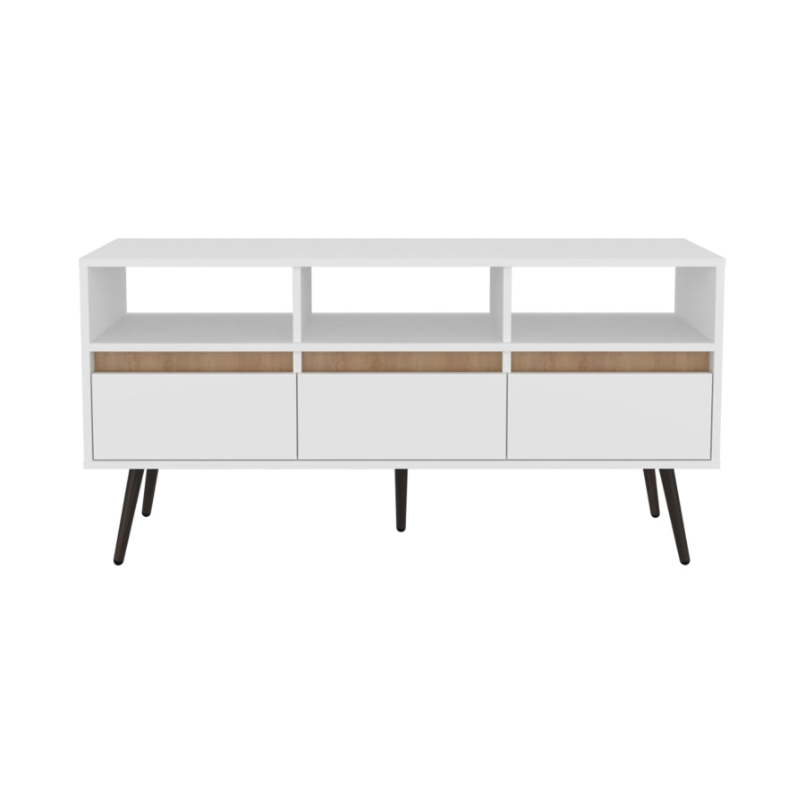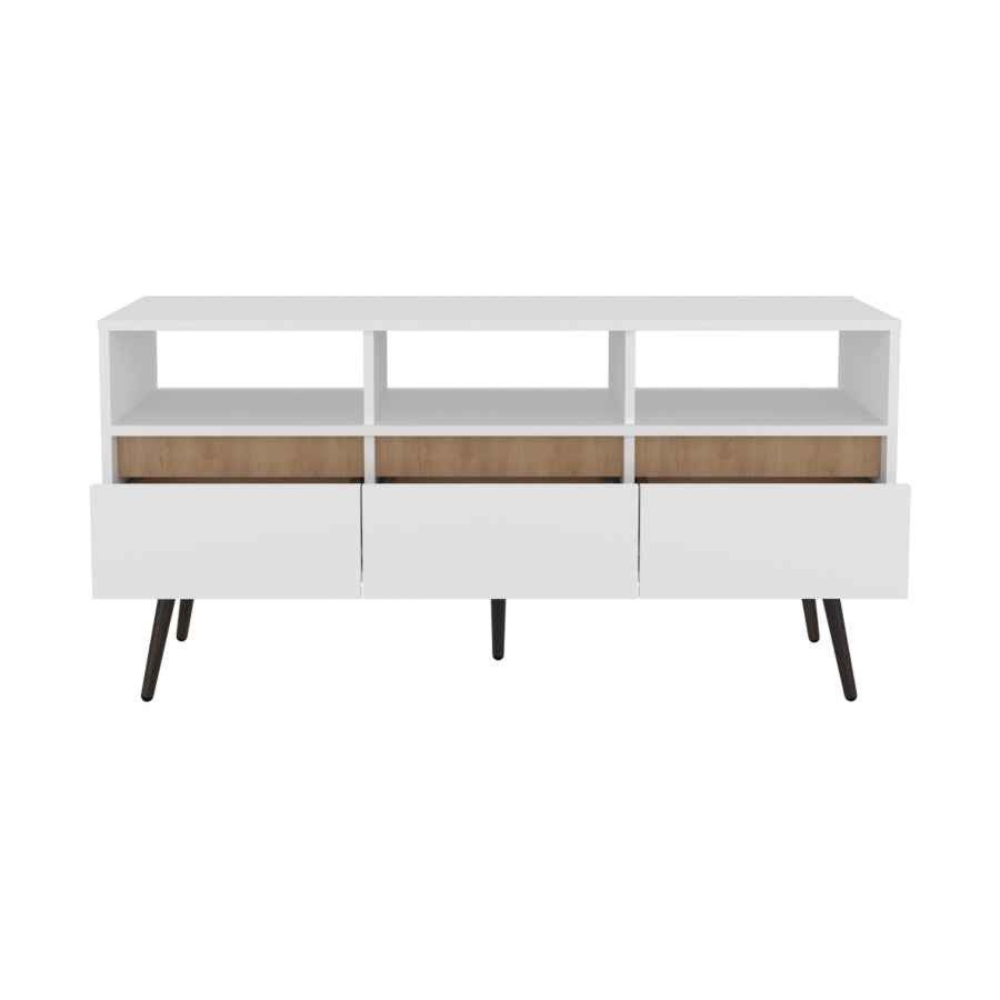 TV Stand, 3 Drawers, 3 Shelves, White / Natural Oak B097P262374