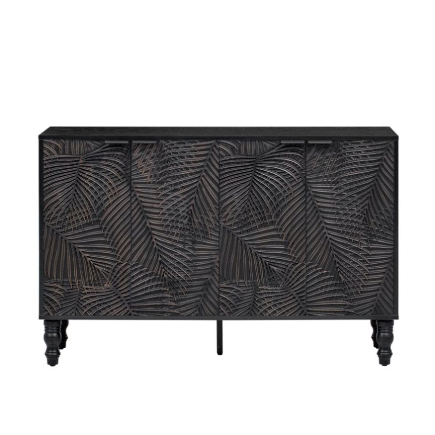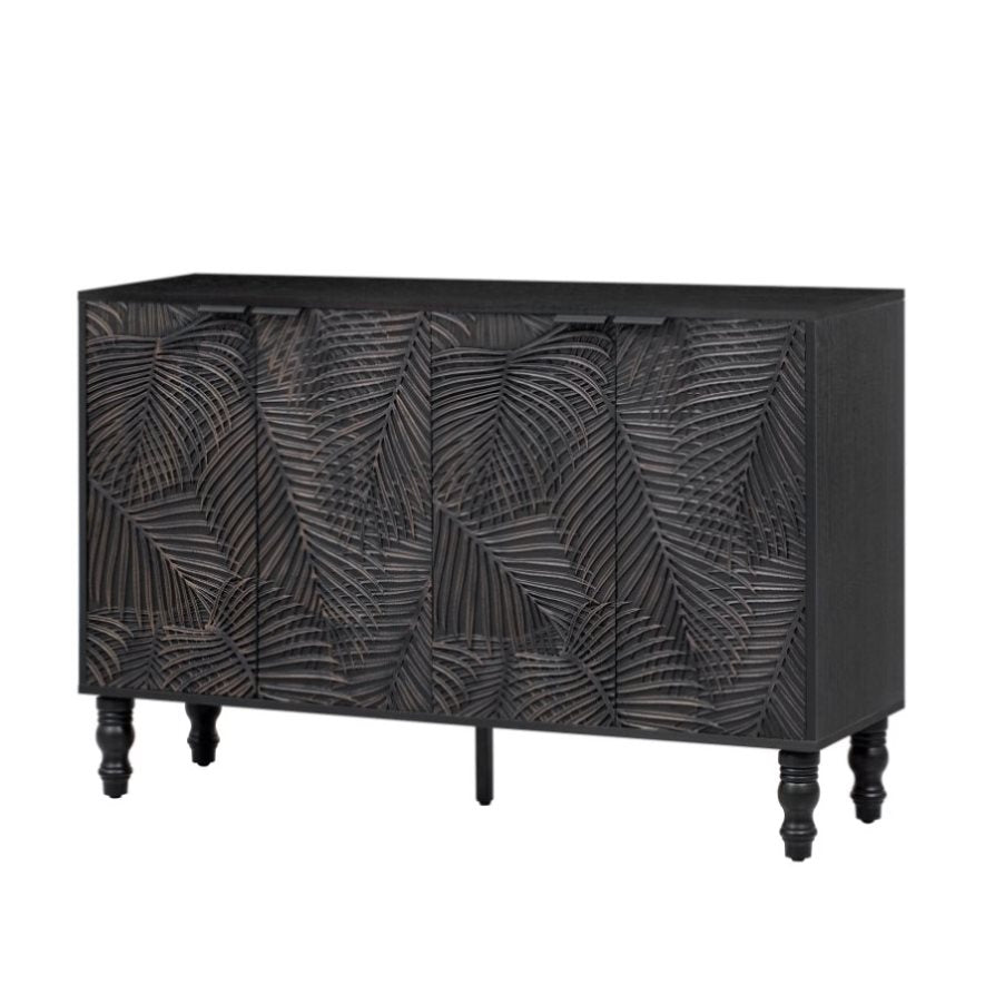 The design essence of this TV cabinet lies in its simple and smooth lines, showcasing the perfect fusion of modernity and elegance. Above the cabinet door, the unique leaf texture is delicate and lifelike, as if the lush greenery of nature has been cleverly introduced into the home space, adding a touch of natural charm and vitality to the indoor environment. The design of the handle is equally exquisite, not only providing a comfortable touch but also ensuring smooth and easy operation.