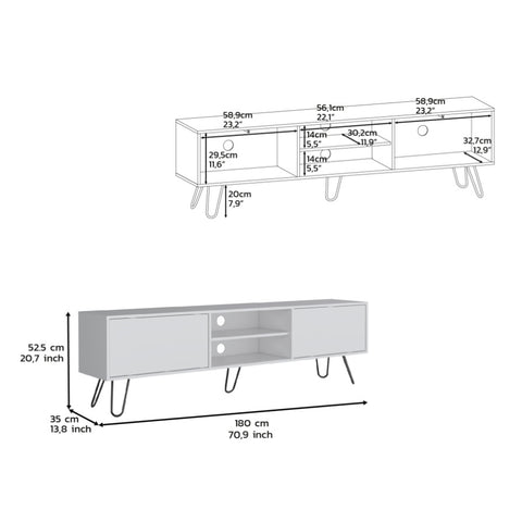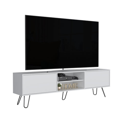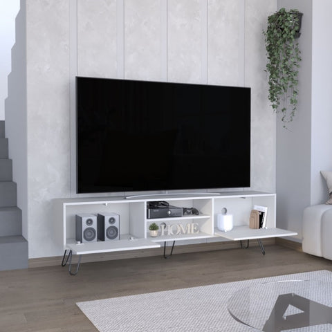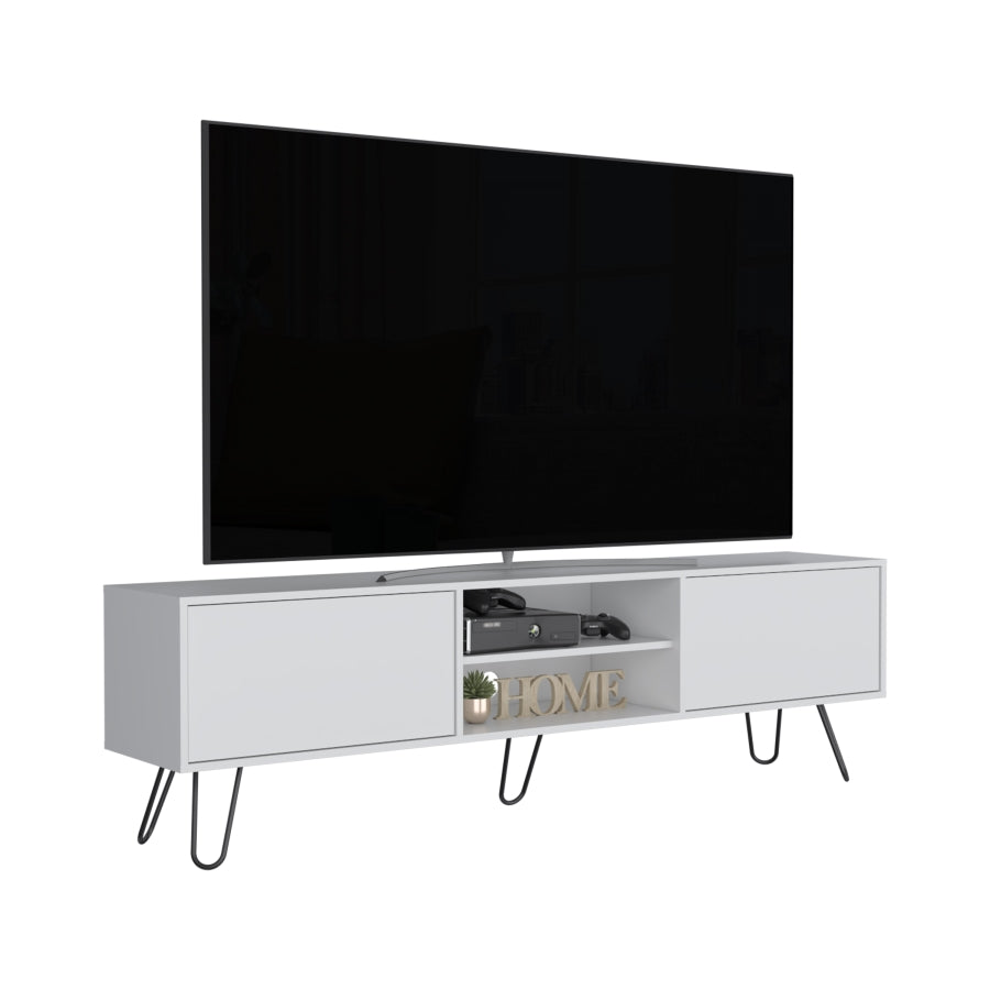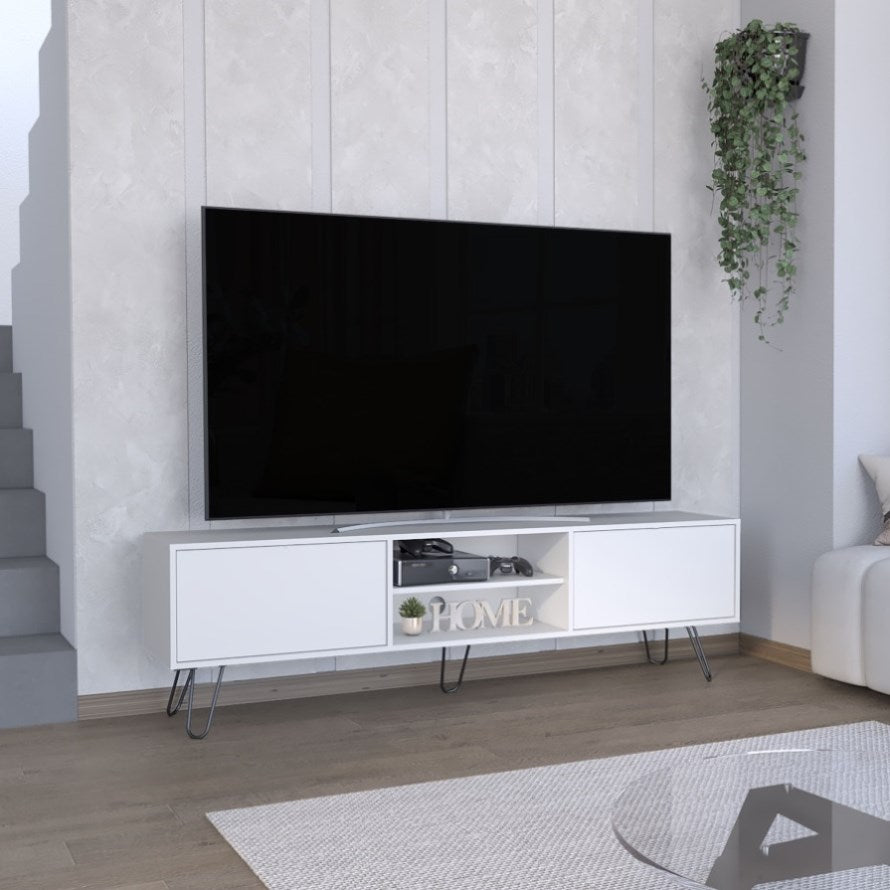 Waco TV Rack, Hairpin Stand with Spacious Storage and Cable Management Holes, White B097P167462