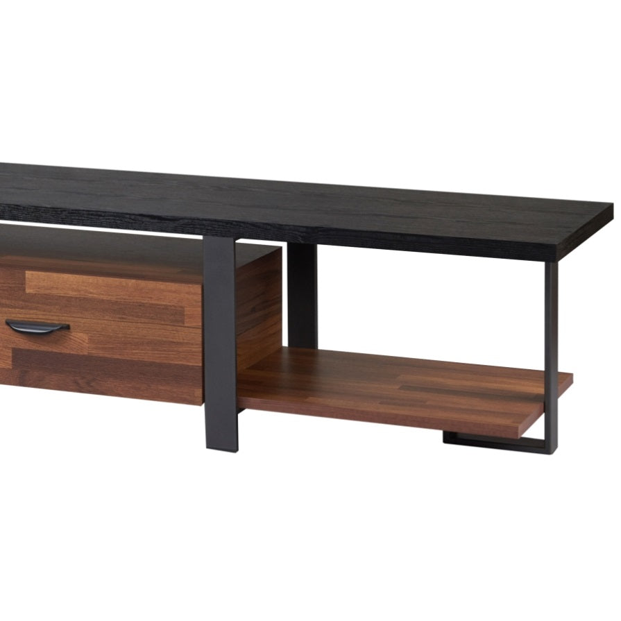 Walnut and Black 2-Drawer TV Stand with 1 Shelf B062P215423