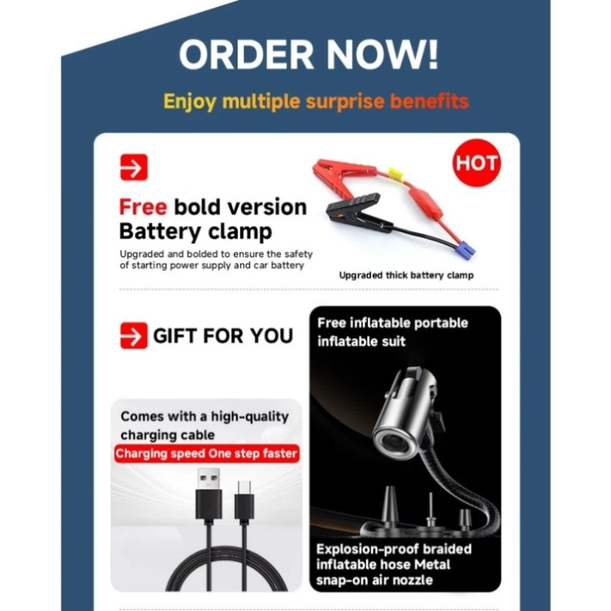 Jump Starter With 10 Built-in Safety Protection Technologies (reverse Polarity, Anti-spark, Short Circuit, Overcharge, Overcurrent, Low Temperature, High Temperature, Overvoltage, Overload, Reverse Charge).