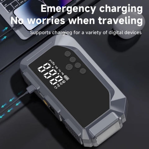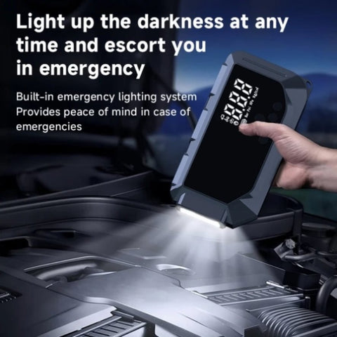 The Jump Starter Box Also Features A Battery, Tire Inflator, And LED Flashlight. The LED Light Supports Three Lighting Modes: Continuous Illumination (white), Strobe And SOS. In Addition, Bidirectional Type-c Fast Charging For Quick Response To Your Needs.
