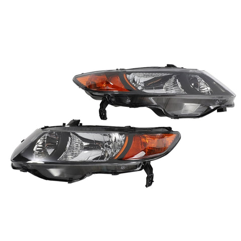 2pcs Front Left Right Headlights for Honda Civic 2006-2011 2dr Coupe Models Only Black 91407748