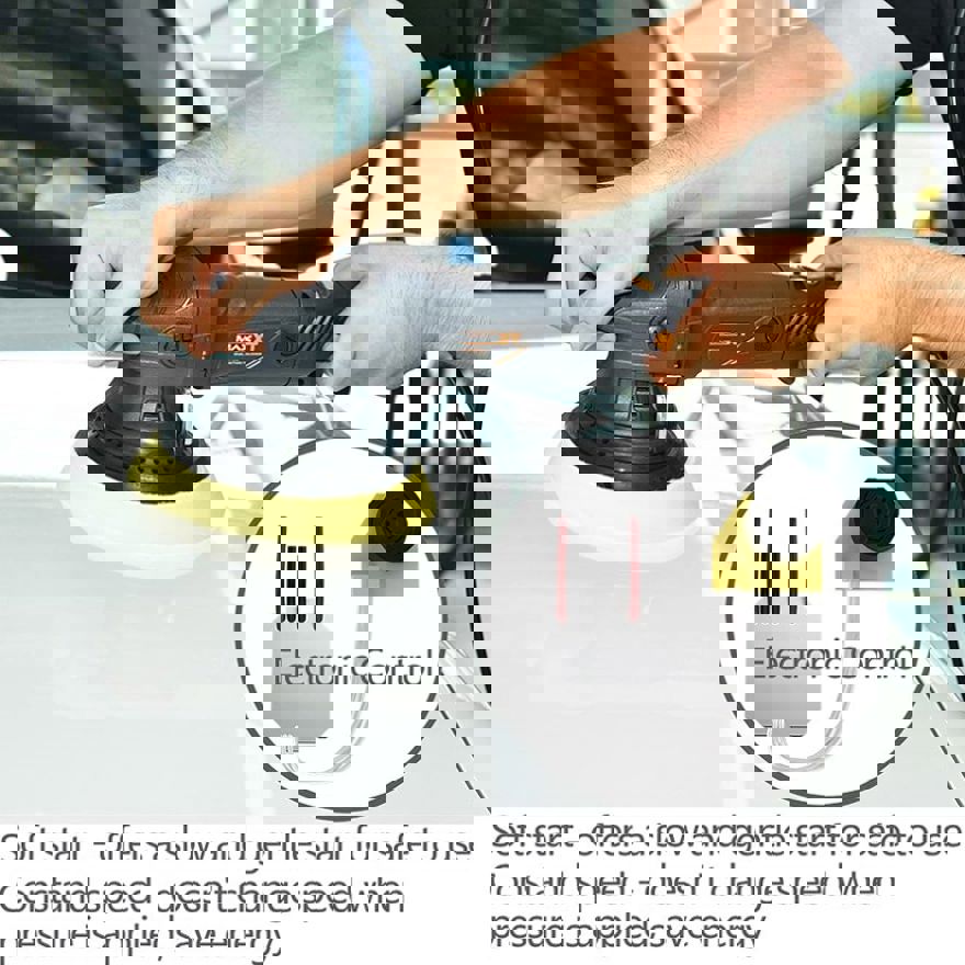 SOFT START & VARIABLE SPEED & CONSTANT SPEEDSoft start offers more safe to use this buffer for car detailing, infinitely variable speed between 2100-5000 opm (orbit per minute) ensures work at the right speed, constant speed can keep stable speed without any change during operation