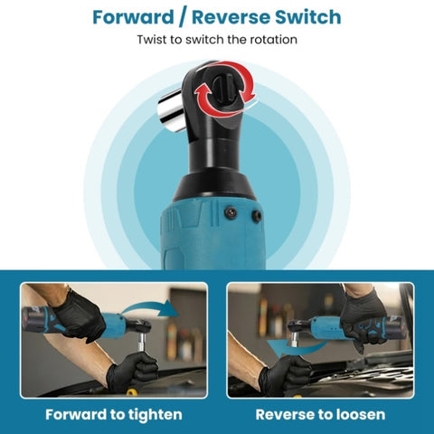 Highly Efficient: Equipped with pure-copper motor, the cordless ratchet wrench adopts a 400RPM speed, providing great power for removing or installing nuts. Forward/reverse switch allows you to tighten or loosen easily.