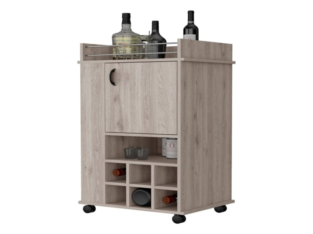 Allandale 1-Door Bar Cart with Wine Rack and Casters Light Gray B062111722