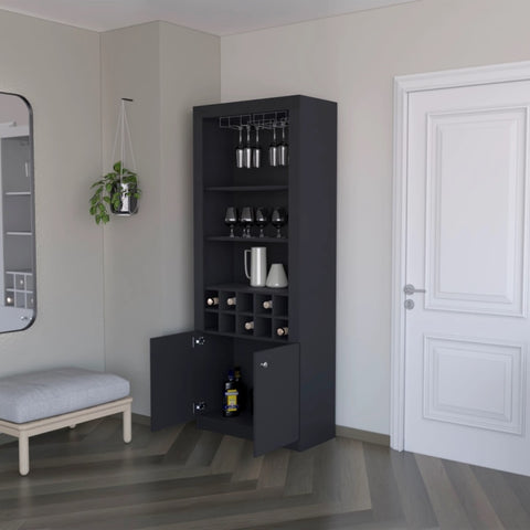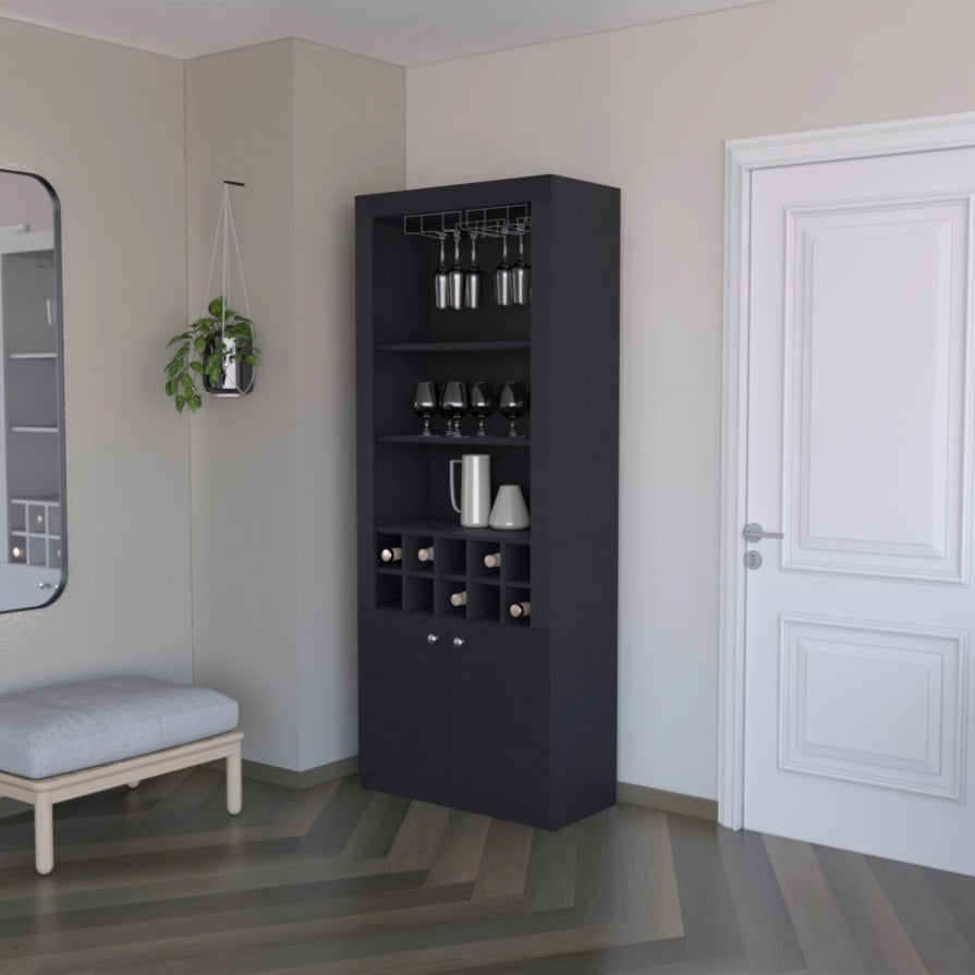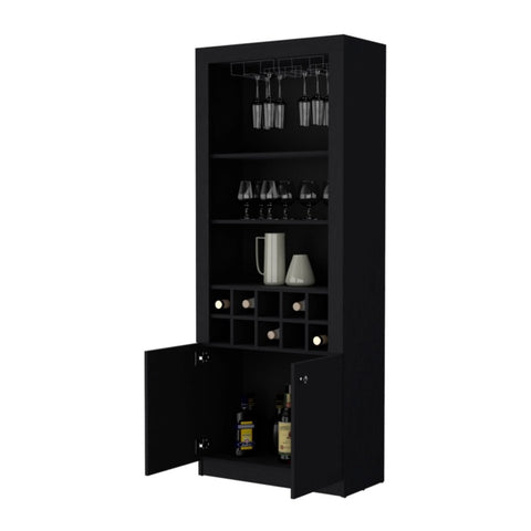 Black Bar Cabinet with Wine Storage and Three Shelves B062P193657