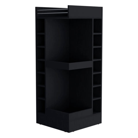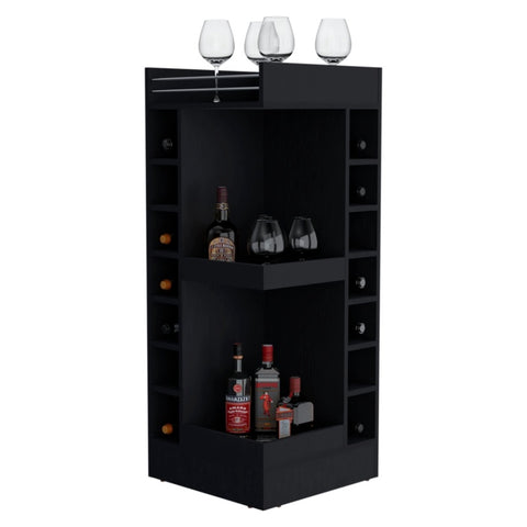 Black Corner Bar Cabinet with Wine Rack and Open Shelf B062P290260