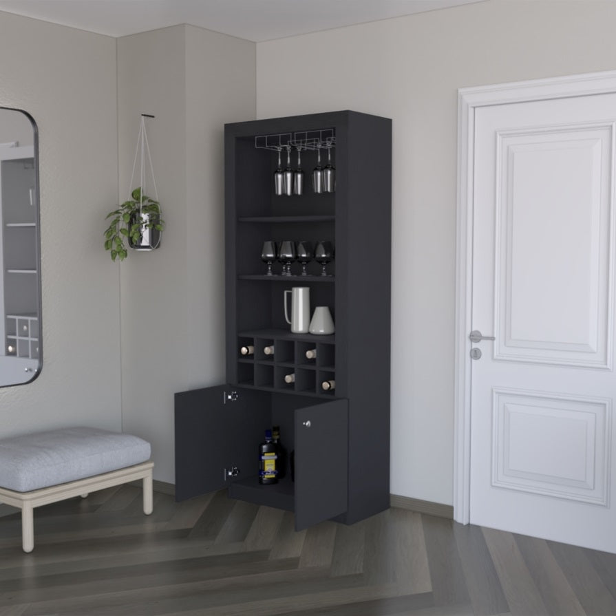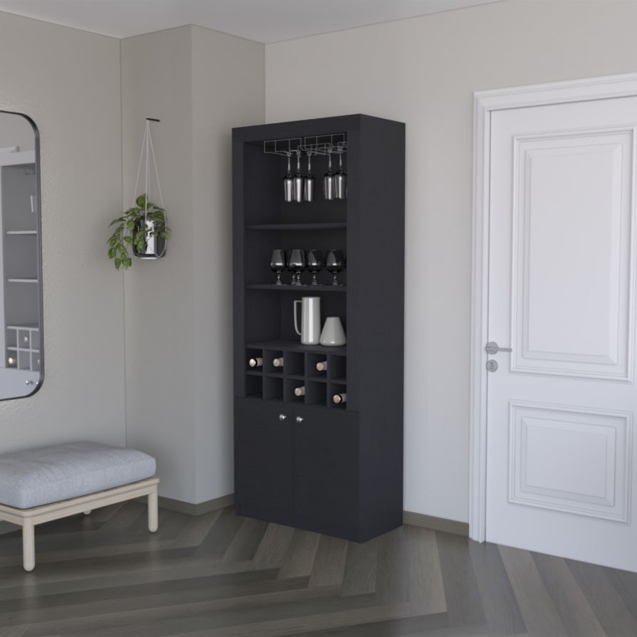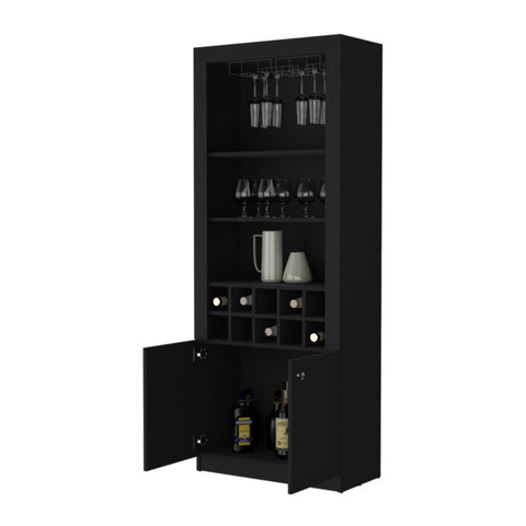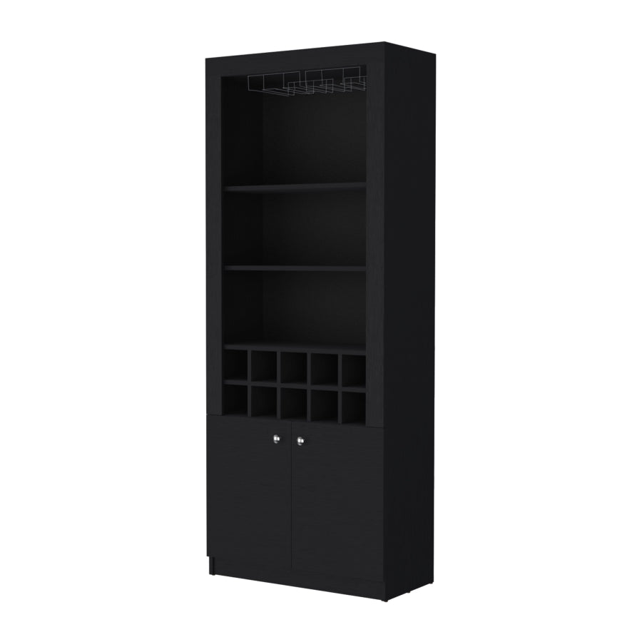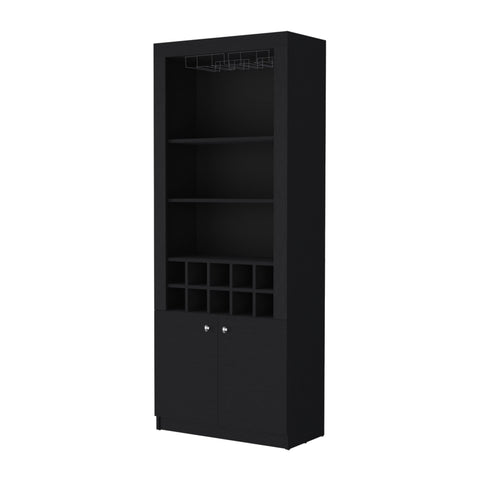 Clover Bar Cabinet, with wine storage and thre shelves, black
