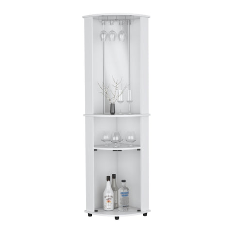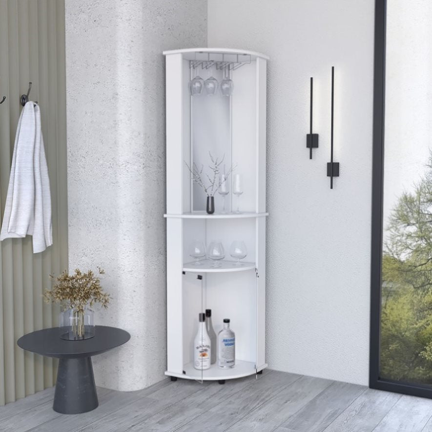 Corner Bar Cabinet Unit with Wine Glass Rack and Lower Cabinet, White B097P221375