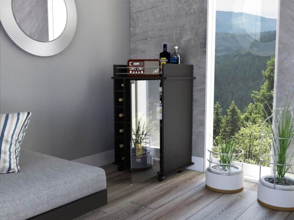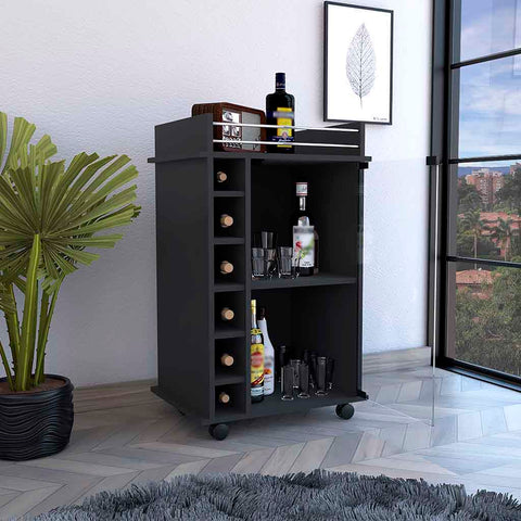 Dukat Bar Cart,Two Shelves, Six Built-in Wine Rack, Four Casters -Black B07091846
