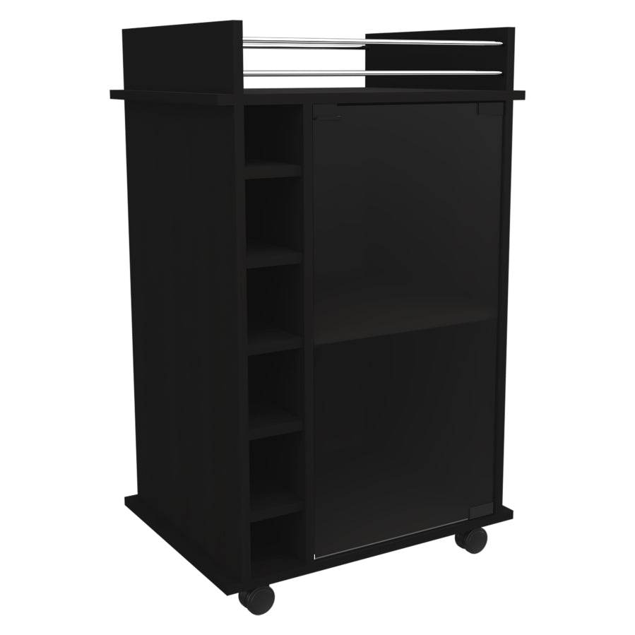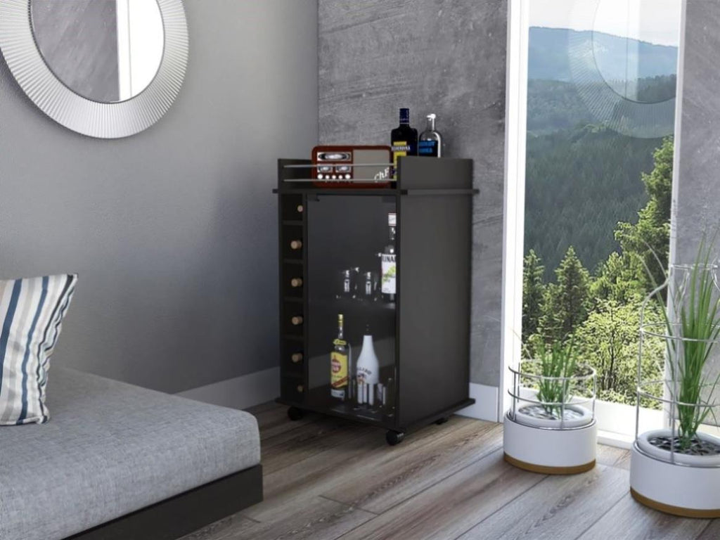 Dukat Bar Cart,Two Shelves, Six Built-in Wine Rack, Four Casters -Black B20091846