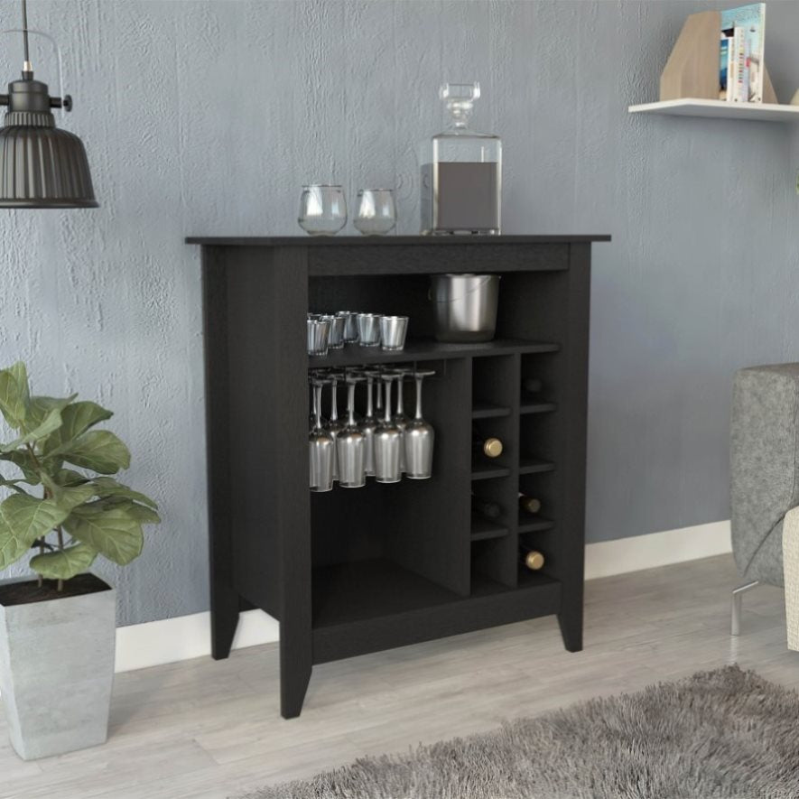 Essential Bar Cabinet, One Open Shelf, Six Built-in Wine Rack, One Drawer -Black B07091856