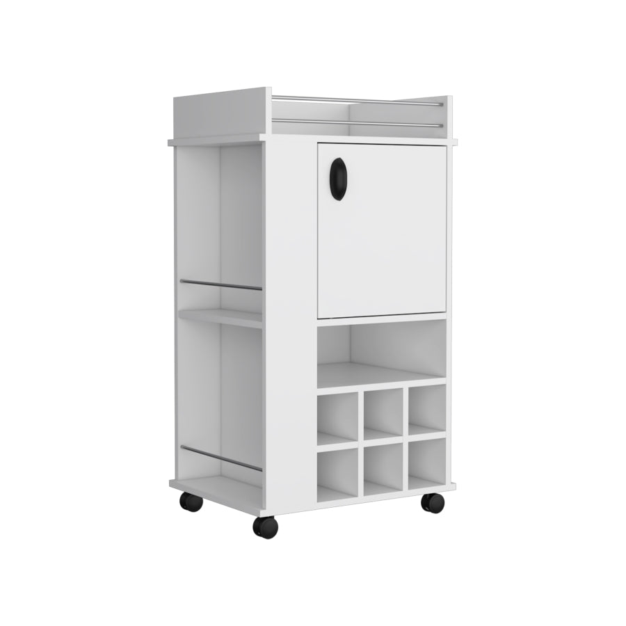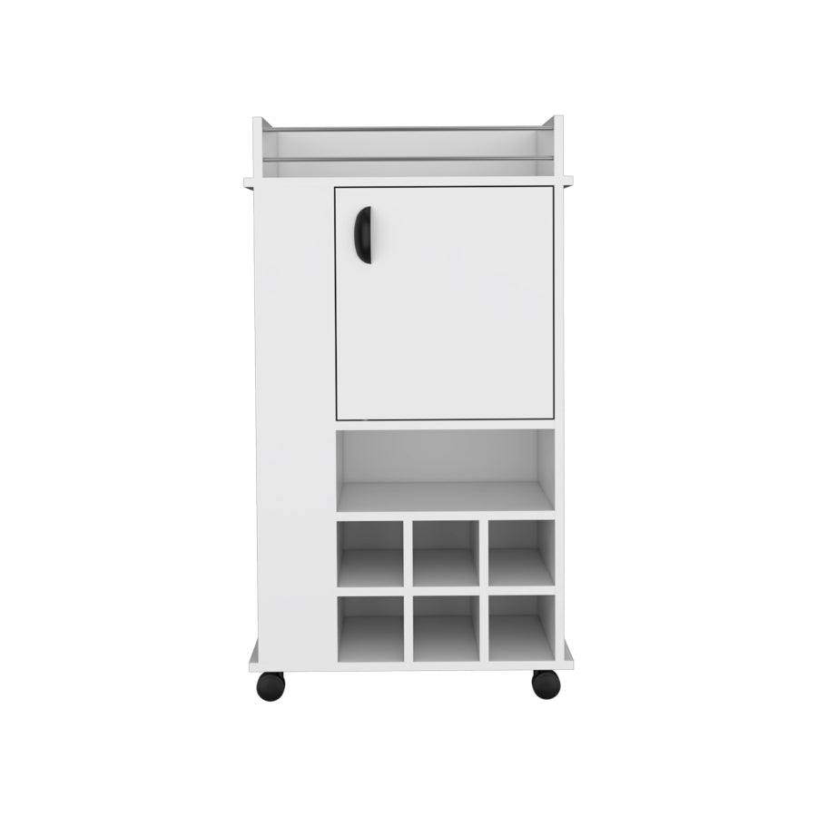 Fargo Bar Cart with Cabinet, 6 Built-in Wine Rack and Casters B070P188860