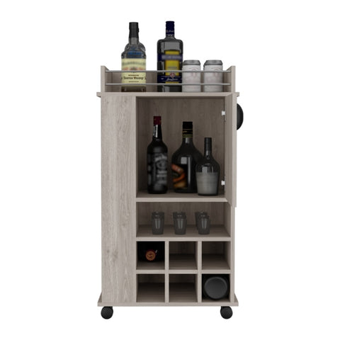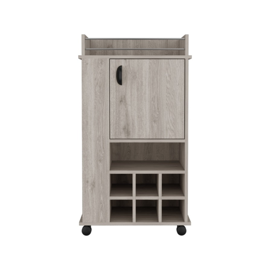 Fargo Bar Cart with Cabinet, 6 Built-in Wine Rack and Casters B070P188865