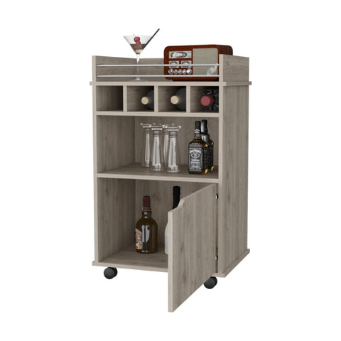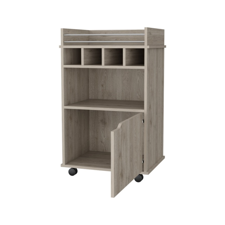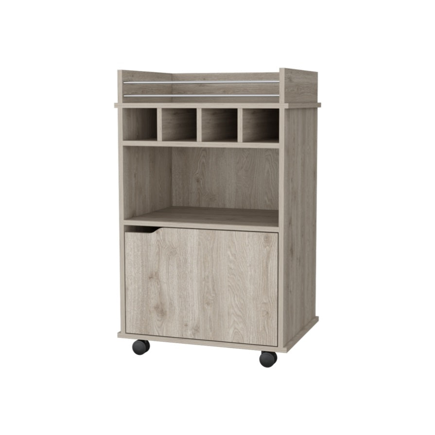 FM FURNITURE Crozier Bart Cart, with 1 shelf, 1 door and four built-in wine rack,Macadamia B128P321058