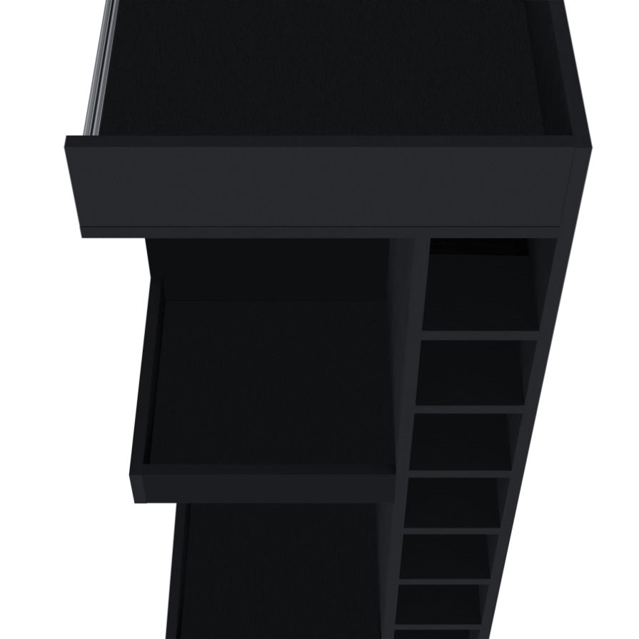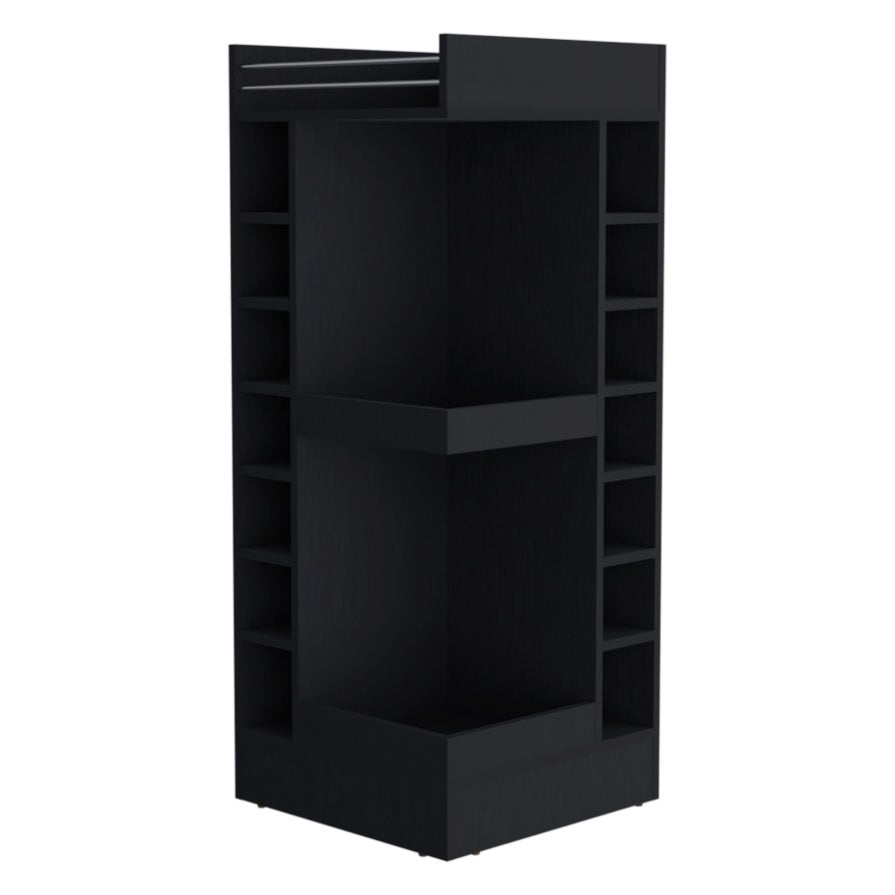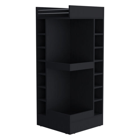 Lamer Corner Bar Cabinet with Wine Rack and Open Shelf, Black