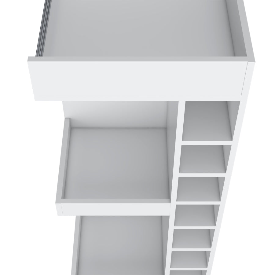 Bottle Rack: Side compartments designed to hold up to 12 wine bottles securely.