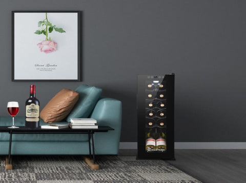 12 Bottle Compressor Wine Cooler. The perfect addition to a wine enthusiast's kitchen, restaurant or office, this wine chilling refrigerator keeps reds and whites the perfect temperature! When you're a wine enthusiast, you know that it's important to keep your wine the right temperature to ensure a deliciously bold flavor—especially when you enjoy a good glass with dinner or hosting those impromptu parties with friends!