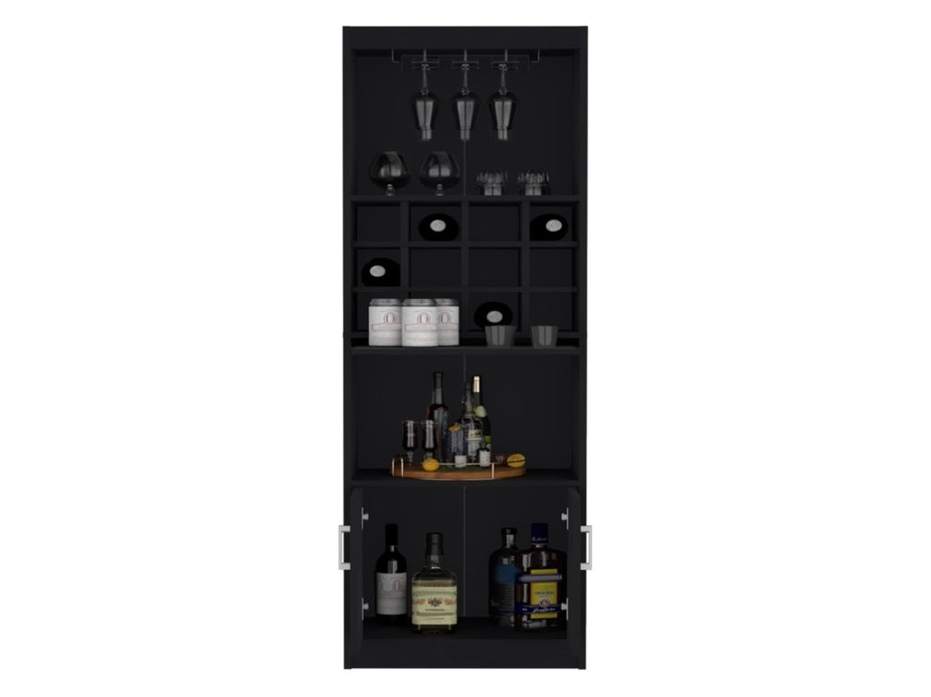 Ample Storage Space: This cabinet composed of lower double door cabinet . The mid section features a bottle cubbie rack for mutliple bottles, and the top includes one spacious shelf 4 line stemware rack , A pullout shlef is perfect to prepare drinks. This storage space allows you to cstore all type of items, like kitchen utensils, jars, snacks, liquor orderly.