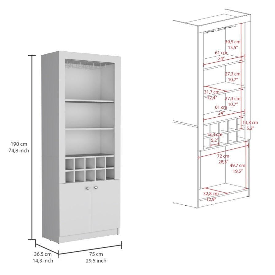 Nero 74-Inch Tall Bar Cabinet 4-Tier Modern Bar Cabinet with Glass Holder Stemware Rack, Wine B070P188834
