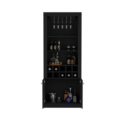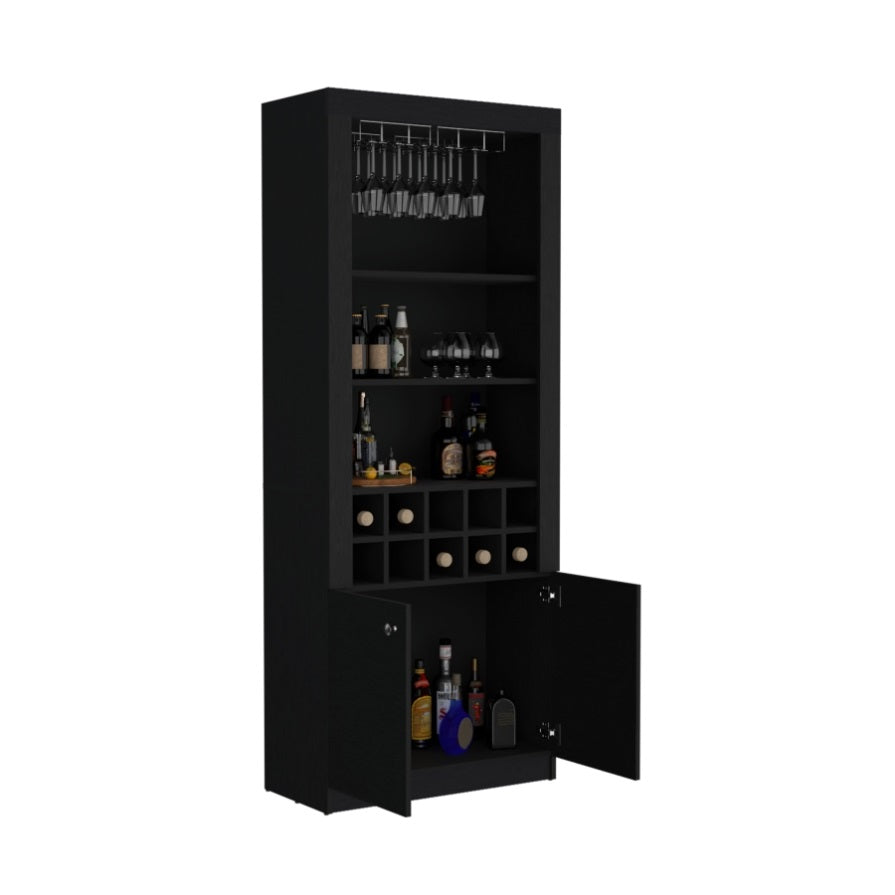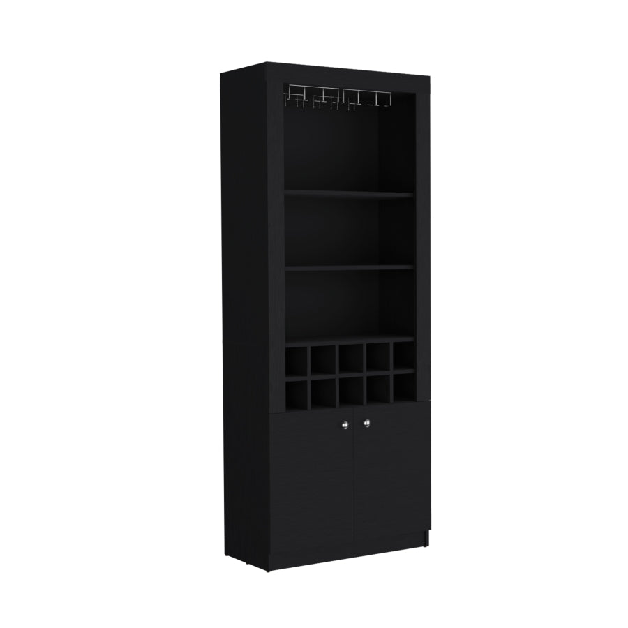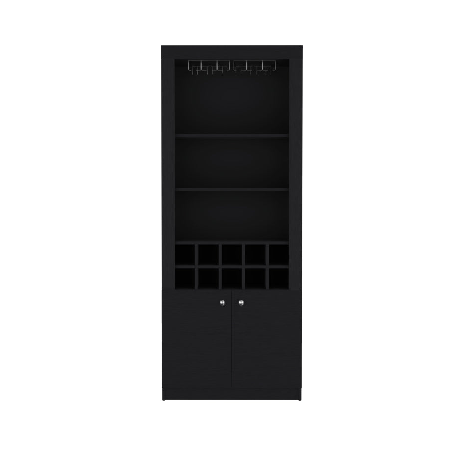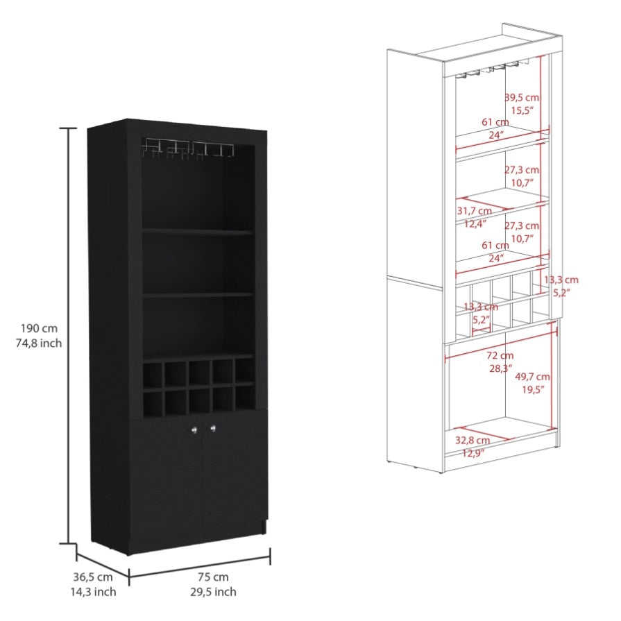 Nero 74-Inch Tall Bar Cabinet 4-Tier Modern Bar Cabinet with Glass Holder Stemware Rack, Wine B200P188833