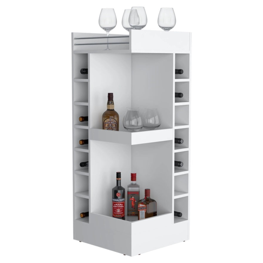White Corner Bar Cabinet with Wine Rack and Open Shelf B062P290258
