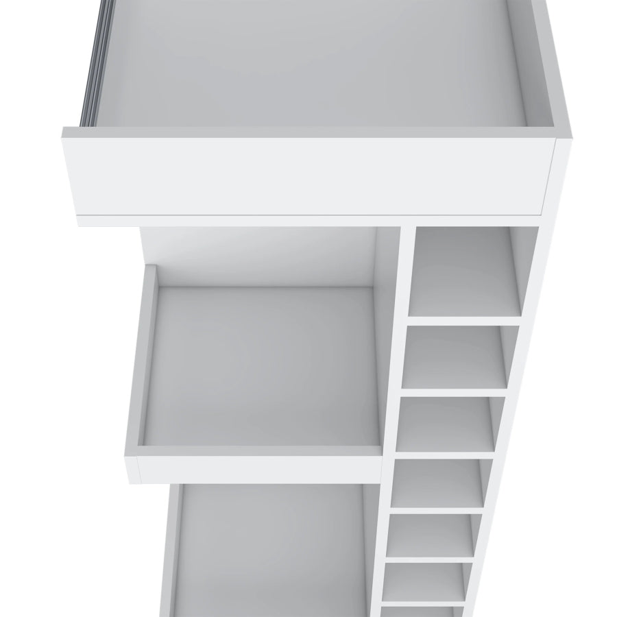 Finished in a crisp white hue, this shelf brings a clean, modern touch to any room while maximizing storage with its four spacious shelves. It includes a built-in bottle rack for stylish, organized beverage storage and an open shelf design for easy access and display of your essentials.