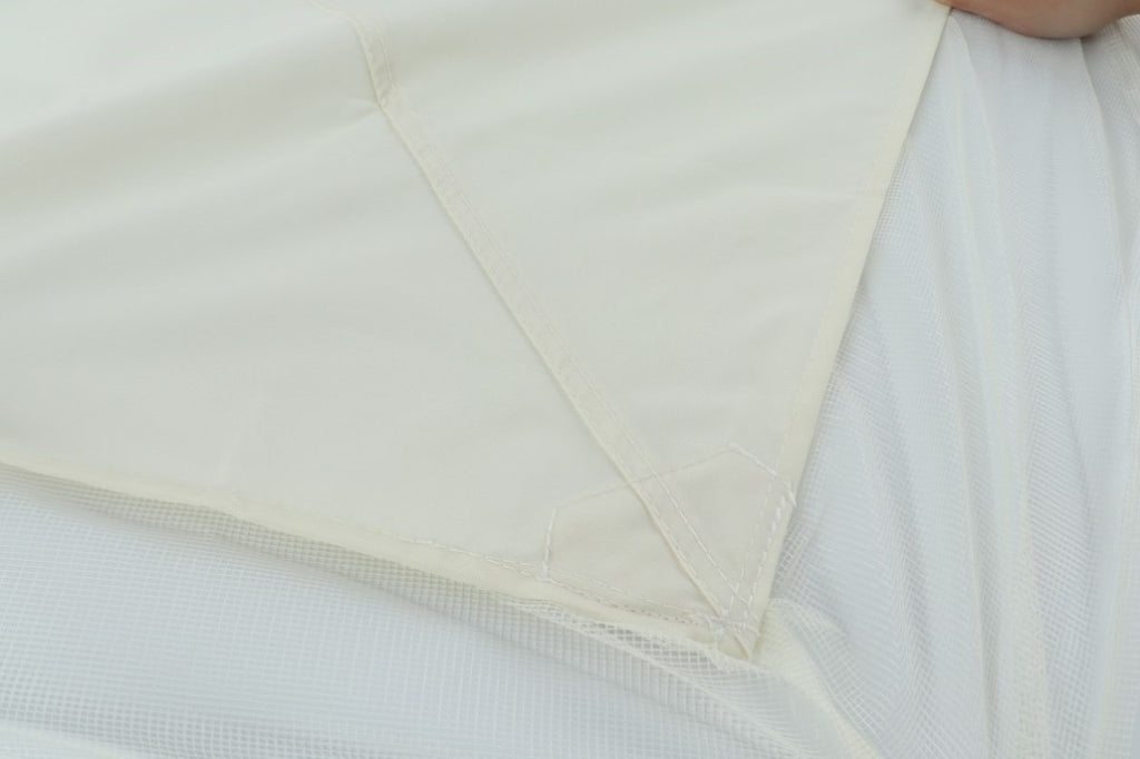 Higher Top With Mosquito NettingA mosquito net is placed between the two layers of roof to maintain ventilation and keep out flying insects.