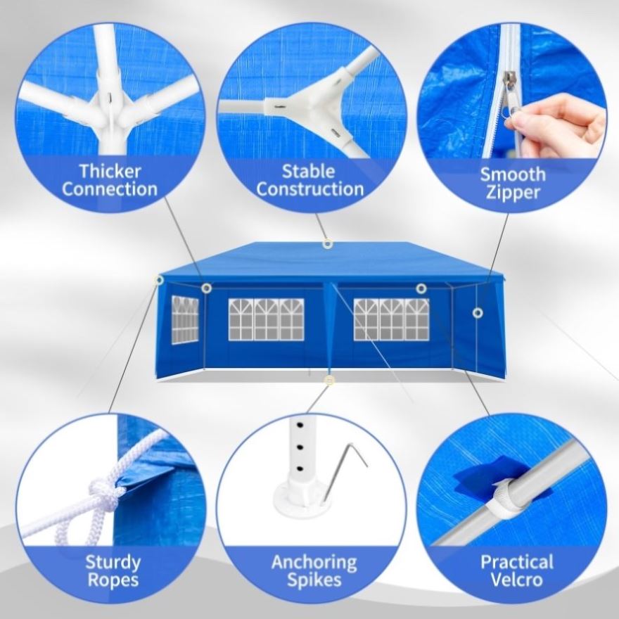 10'x20' Outdoor Party Tent with 6 Removable Sidewalls, Waterproof Canopy Patio Wedding Gazebo, Blue 16384715