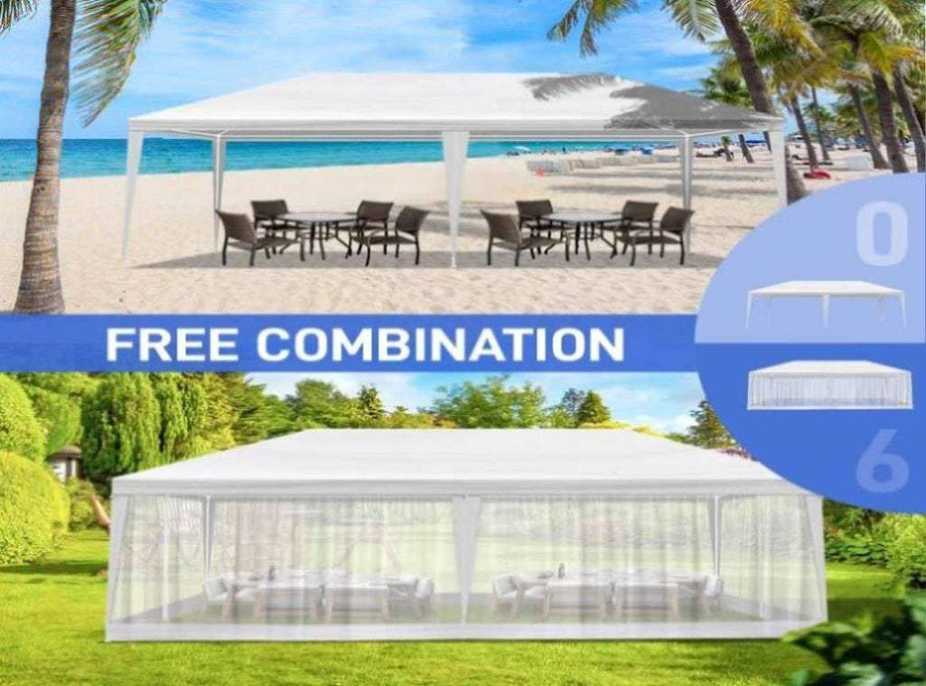 Take such a practical 10X20FT tent for daily use! It will provide you with happy time in the open air! The top canopy is made of 90G PE fabric, which is waterproof and is a great sun-coverage solution, and the 6 meshing netting sidewalls protect you from insects and mosquitoes to makes it extremely fit for outdoor activities. In addition, this party tent come with great durability and reliability. It is easy for installation and disassembly! Do have a try with our Tent, Set it up on your lawn or on your patio, and get ready to enjoy delightful outdoor life!